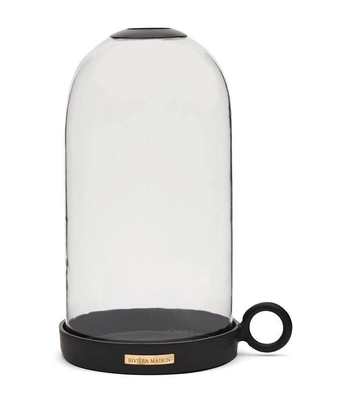 De Urban Loft Cloche Large is een glazen stolp van 45 centimeter hoog en 26 centimeter in diameter. De stolp heeft een plateau van zwart aluminium. Omdat de bovenkant opengewerkt is, kun je in de stolp ook een kaars plaatsen. Aan het grote oog kun je de cloche optillen.